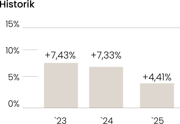Vi estimerar att Aktiv Ränta kommer ge en avkastning på 4-5% 2026. Jämfört med ett traditionellt sparande på banken, som i genomsnitt håller en ränta på 2,5%, ger det en mycket god avkastning utan att tumma på riskerna.